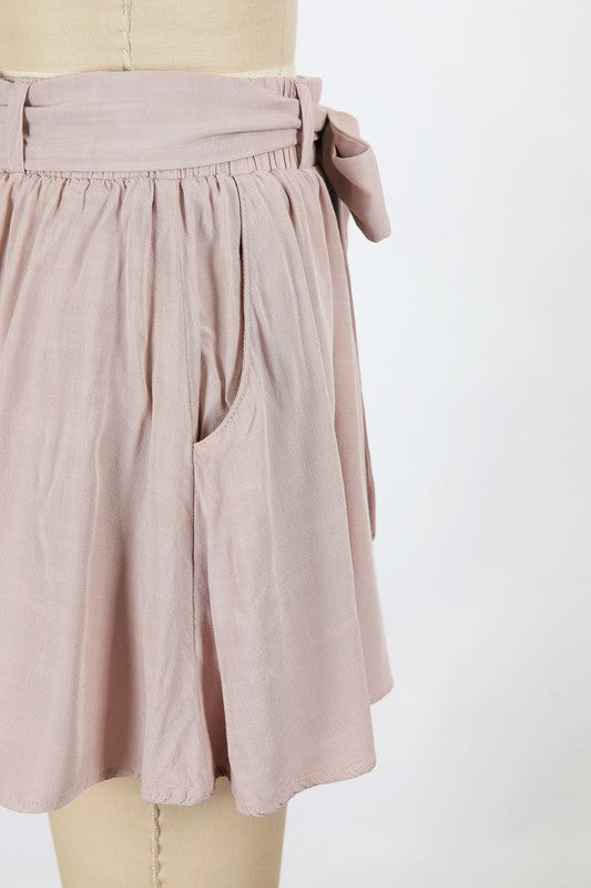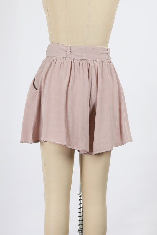 Shorts, but make them look like a skirt. These beautiful, blush colored tie front shorts are so flowy and flirty that they actually could pass as a skirt! The soft pink color makes them the perfect for springtime brunch!
