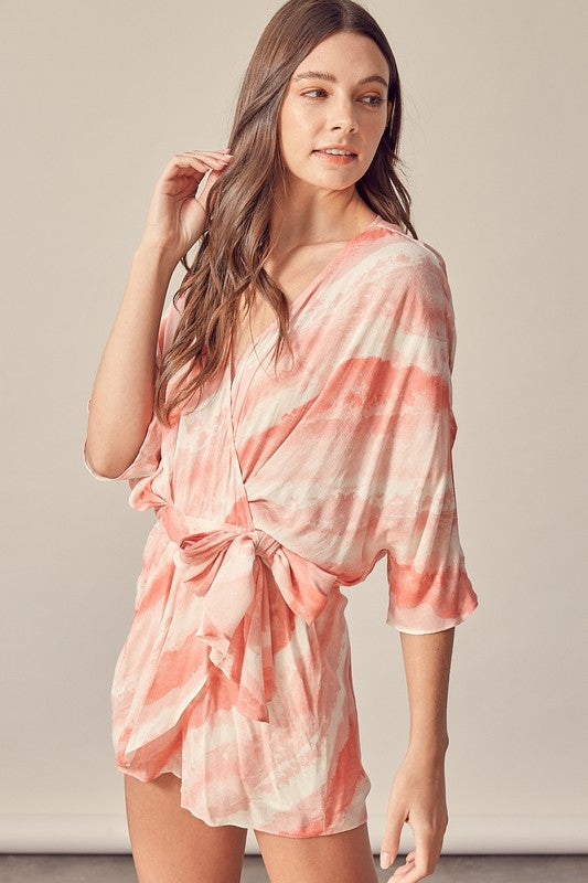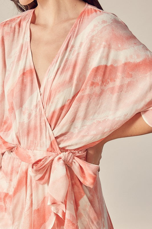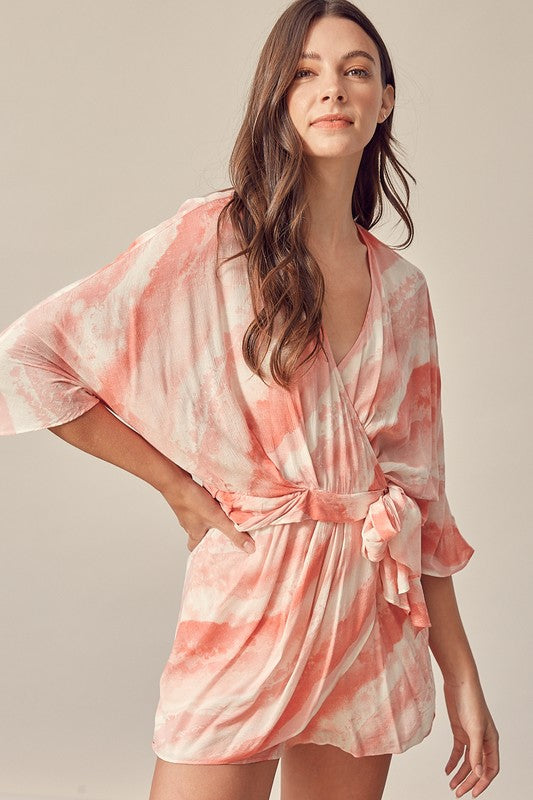 Between the color and the fit, we are OBSESSED!! This wrap style romper features lined shorts and an elastic waist. It's a wrap style fit and ties on the side. It's shorts in the back, but a skirt in the front. So, you're dressed for both occasions!