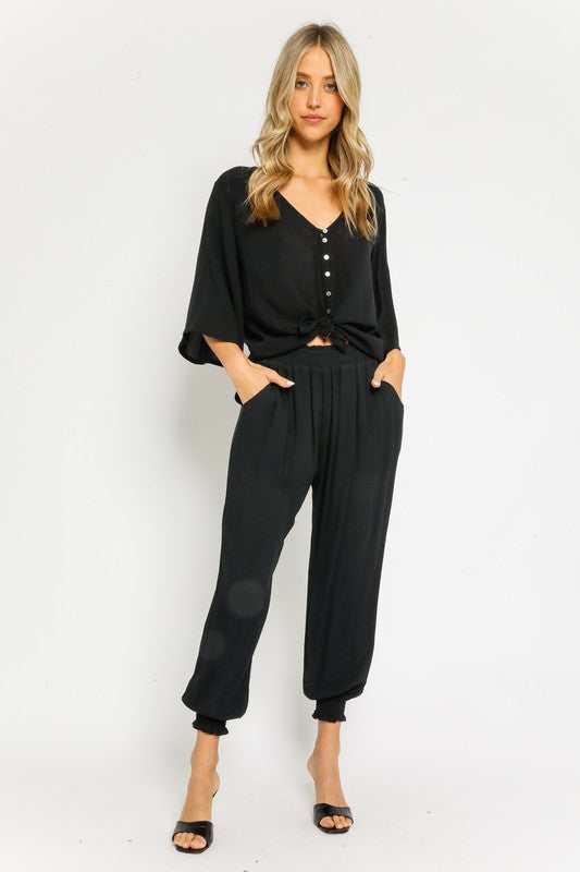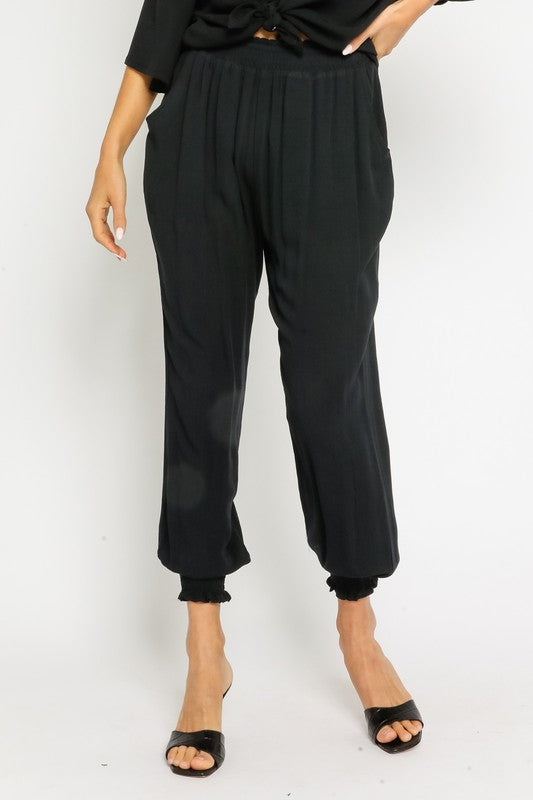 Do you really need another pair of black joggers?! When they're as soft and lightweight as these, the answer is YESSS!! These amazing fitting joggers feature a smocked waistline and cuffs. They also have pockets because they wanted to show off.